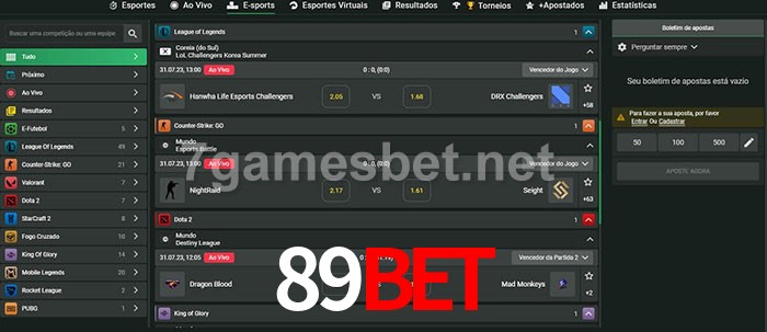 A aposta 89BET oferece aos jogadores a experiência mais conveniente de apostas em eSports!